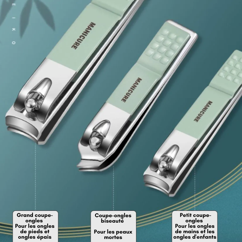 Vous l'aurez compris notre kit renferme le nécessaire (et bien plus encore) pour prendre soin de vos mains, de vos pieds et même de votre visage. En effet, grâce aux repousse-cuticules, aux coupes-cutilicules, à la lime, coupe-ongles et couteaux pour pieds, vous pouvez réaliser une réelle beauté des mains et des pieds digne d'un salon. De la coupe à la manicure, notre kit propose une variété d'outils essentiels pour avoir des ongles toujours impeccables !
